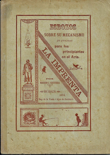“La Imprenta. Esbozos sobre su mecanismo de utilidad para los principiantes en el Arte”. Es el título de un pequeño libro de Mariano J. Castanera, editado en 1894 por la “Imprenta de la Viuda e hijos de Castanera”. Tiene 103 páginas, en cuarto, y es un pequeño manual para las personas que quieran conocer el mundo de la Imprenta: términos técnicos, tipos de trabajo e ilustraciones con una introducción histórica sobre este invento, que revolucionó el mundo de la cultura y la comunicación.