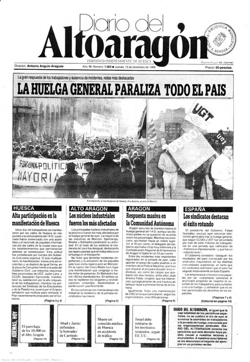 En el verano de 1988, los accidentes de montaña eran considerados una plaga. El 18 julio, aniversario de la inauguración del ferrocarril de Canfranc, se demandaba su reapertura. En octubre comenzaban las obras de la variante norte del puerto de Monrepós. El 14 diciembre, hubo una huelga general. Al día siguiente se informaba de que el paro había bajado de las 10.000 personas en la provincia. Eso sí, en vez de euros, había pesetas. Debe ser lo único que ha cambiado.