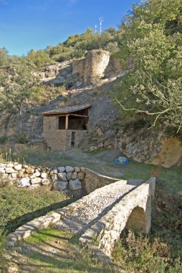 Benabarre es un población que merece una detenida visita. Pero, junto a la espectacularidad del castillo, la trama urbana, el pozo de nieve o la no menos espectacularidad del queso y el chocolate, rincones como el del molino harinero satisfacen al visitante. Seguro. El pequeño puente medieval salva el barranco. Al fondo, el edificio recuperado en su estructura y que estaba parcialmente excavado en la roca. En la parte alta, la balsa y el cubo para lanzar el agua parecen una muralla. Su restauración añadió un elemento de interés a la villa ribagorzana.
