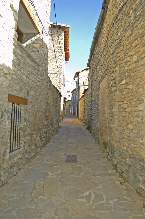 Cuando se establecieron las provincias, el límite administrativo entre las de Lérida y Huesca, en buena parte de la zona más septentrional, quedó definido por el río Noguera Ribagorzana. En teoría. En la práctica, la divisoria administrativa discurre a veces por un lado y a veces por el otro. Se dan casos curiosos. Las casas de Puente de Montañana están en su mayoría en la orilla izquierda del río pero es una localidad de la provincia de Huesca. Pero aún así, la calle Tremp tiene las casas de un lado en Aragón y las del otro en Cataluña. Un panel informativo así lo indica. Pero hay una situación más curiosa: una casa tiene el comedor en el viejo Reino y las habitaciones en el Principado. En la Ribagorza es difícil poner fronteras este-oeste. Me parece.