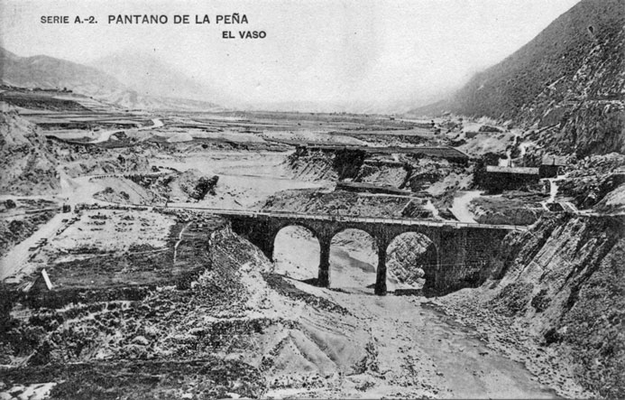 | Pantano de La Peña. El vaso. Colección “Pantano de La Peña”. Fototipia de Hauser y Menet, Madrid. Legado Montaner. Fototeca de la Diputación Provincial de Huesca |