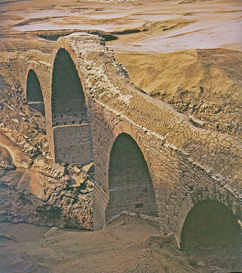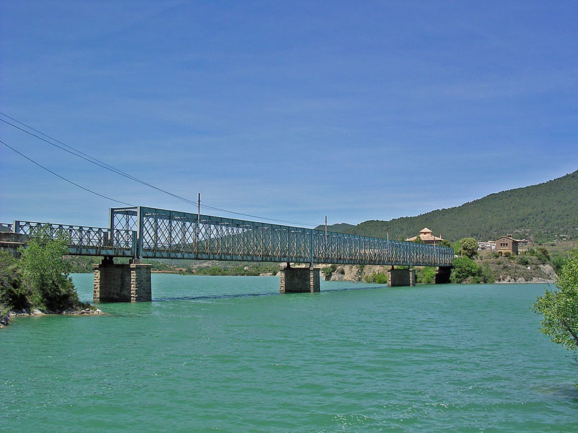 | Puente de La Peña, actualmente bajo las aguas del embalse. (Foto de Fernando Biarge publicada en el primer volumen de «Alto Aragón, su historia, cultura y arte») |