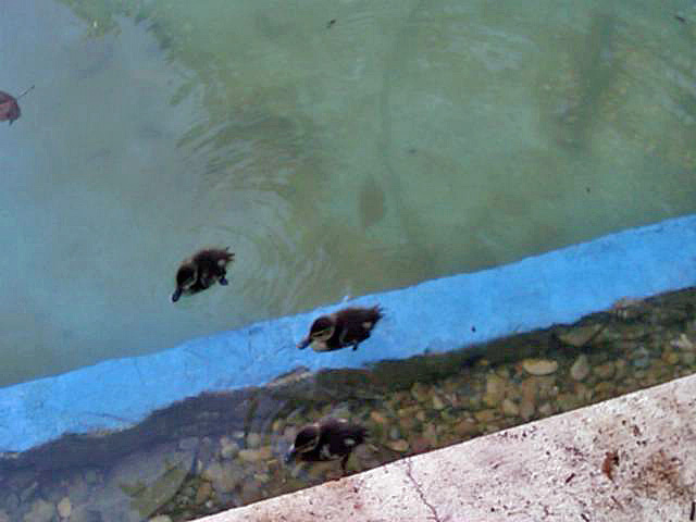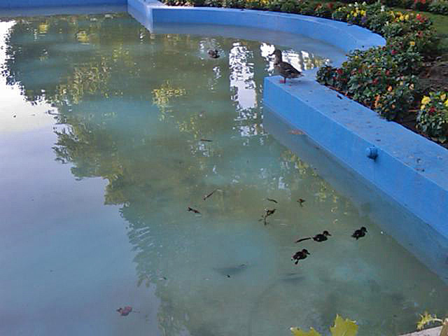 El estanque del paseo central del parque municipal Miguel Servet ha sido restaurado recientemente y luce como nuevo. Llama la atención la presencia de una familia de patos, animales que abundan en un estanque cercano, ya en la ampliación de este parque, pero no en este, en el que el protagonismo estaba en la vegetación. En la familia hay cuatro patos de poca edad por su tamaño. Estaba allí un operario afanado en limpiar unos arbustos y le pregunté por los nuevos inquilinos de este espacio municipal. Me comentó que la familia en cuestión había venido del cercano estanque huyendo de los gatos que, según comentaba, acaban con todas las crías de pato que pueden. Esperemos que esta nueva colonización tenga éxito.