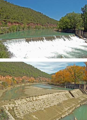 Desde aquí la cola del embalse de Ardisa no hay usos importantes que detraigan caudales y de un tiempo a esta parte, en el entorno de los Mallos de Riglos han proliferado los deportes de aventura relacionados con el agua.