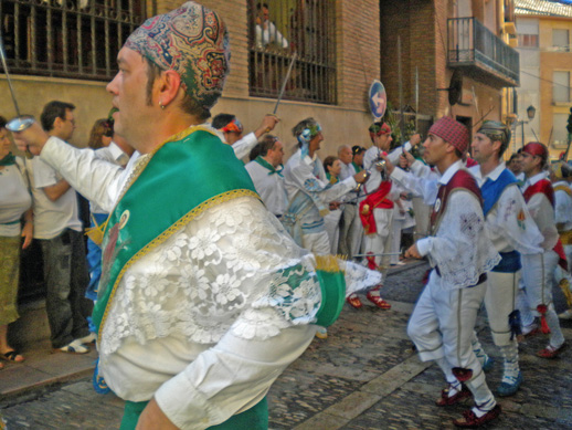 Pedro Lafuente, en Al calor de la cadiera (1996), hablaba de “los danzantes, esos mitos sencillos que chocan las espadas y con ellas hacen sentir viva la ciudad, dan muestra, con su lucha fingida, de que seguimos aquí, de que continuamos bregando, a nuestra manera, para que la ciudad perdure”.