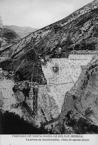 | Obras en la presa de Belsué. Foto Legado Montaner. Fototeca Diputación de Huesca |