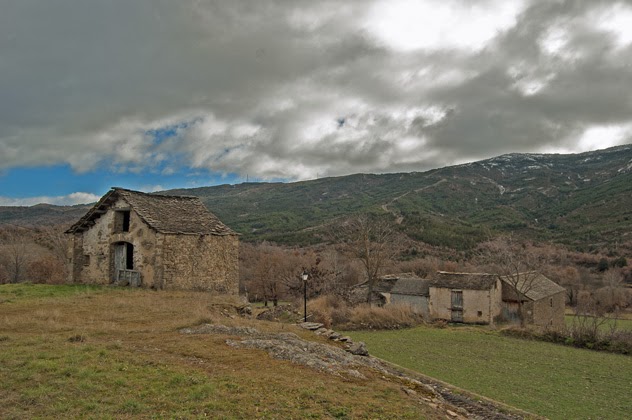 El 23 de enero parecía que iba a descargar una buena tormenta por el entorno de Monrepós. La cosa, al menos hasta las tres de la tarde, no pasó a más. Luego, según la información meteorológica de los medios, hemos conocido que sí, que la nieve ha invadido el Pirineo. Pero en esa mañana de invierno, en Serué, localidad del municipio de Caldearenas, se estaba de maravilla, aunque las nubes grises no auguraran nada bueno. Imágenes como la de esta borda en un extremo del puebo, relajaban bastante. Me parece.