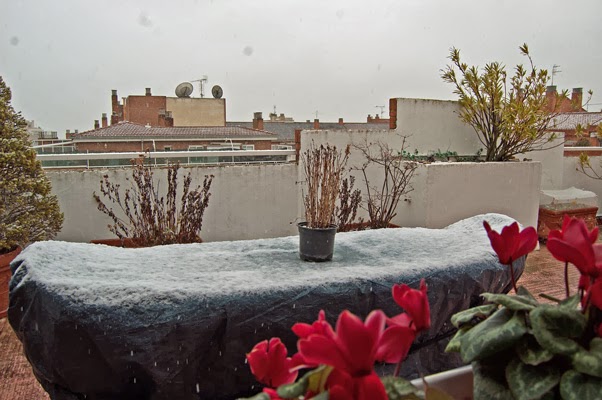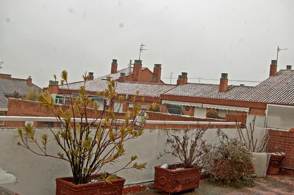 | La nieve solamente ha cuajado, en principio, en los tejados |