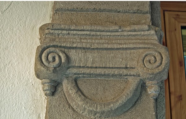 | Detalle decorativo en la fachada de Casa Boticario en Ayerbe |