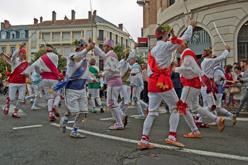 | Los danzantes durante su actuación en las calles de Tarbes |