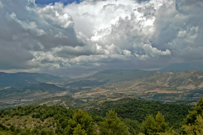 Parecía que iba a descargar una tormenta de mil demonios, pero a última hora de la mañana se había despejado bastante. El 26 de junio fue un día de nubes y claros en la Ribagorza y permitió dejar constancia de momentos como este. La foto está hecha en San Esteban de Mall, a donde se llega desde La Puebla de Roda. Este pueblo está al pie de una gran roca en la que se levanta la ermita de la Virgen del Tozal, que todavía es un mirador más privilegiado que el pueblo. Pero, por ahora, lo dejamos con esta imagen.