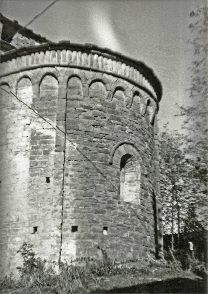 La primera vez que estuve aquí fue en 1981, cuando acompañaba a mi hermano Fernando en sus viajes para dibujar a plumilla los rinconces del Alto Aragón. Como se ve aquí abajo, la casa abadía y el ábside se conservan exactamente igual. Las restauraciones correspondientes nos llevarían a los años 70.