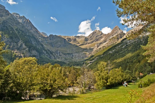 Miraba datos sobre la ermita de la Virgen de Pineta y consulté el libro de Roque Alberto Faci sobre el culto mariano en Aragón escrito el año 1792. Llamaba al paraje donde se levantó el edificio la Balle Verde. Es un nombre muy acertado. Esta foto es del 11 de septiembre. En otros parajes, el verde no sería el color dominante a estas alturas del año, cosa que aquí sí ocurre. El fondo del valle de Pineta es impresionante. Aquí es cierto lo de que una imagen vale más que mil palabras.