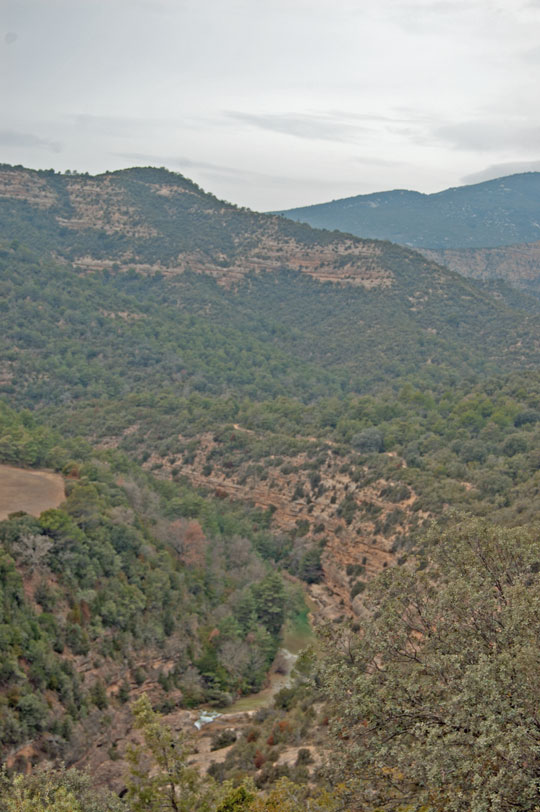 Al principio se pasa por un cómodo camino. Esta primera parte del recorrido, hasta un mirador, está adecuado para personas con discapacidad. El río Alcanadre junto al que discurre el paseo baja a la tierra llana a una cota mucho más baja que la que lleva el senderista.