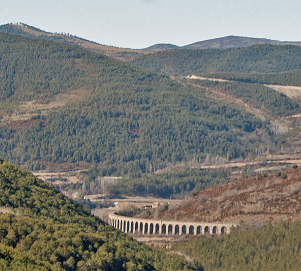 Antes de llegar a la ermita, hubimos de detenernos a contemplar la grandiosa obra. Se halla situada en el tercer lote de la línea férrea en construcción. Está formada por veintiocho arcos de ocho metros de luz, apoyada sobre pilas de tres metros de base y dos macizos o estribos extremos que constituyen en total una longitud de cuatrocientos metros. Se desarrolla en una curva de trescientos metros de radio, discurriendo por el centro del valle llamado de San Juan.