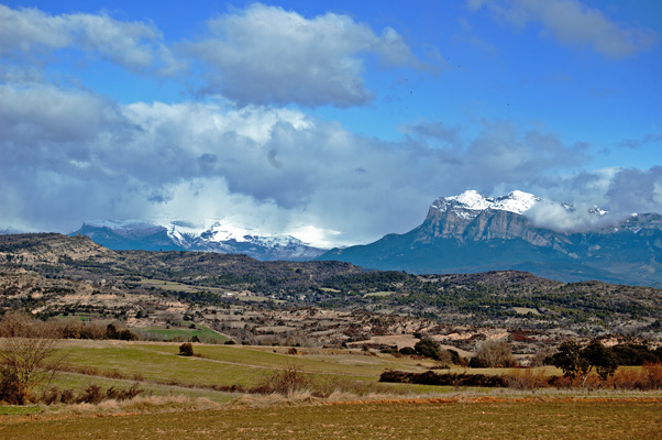 La Peña Monrtañesa, aparte de otras características, es muy fotogénica. Como fondo de decorado para muchos rincones del Pirineo garantiza el éxito de la imagen. Si a esto sumamos, por ejemplo, un pueblo bonito como Muro de Bellós, o un paisaje como el del entorno de Olsón, no hace falta nada más. Me parece.