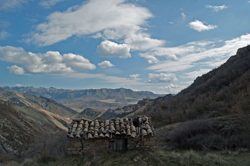 Un paseo entre Arén y Sobrecastell, en la Ribagorza, permite disfrutar de imágenes como estas, tomadas junto a una vieja caseta que se resiste a caer aunque esté ya fuera de servicio. Está en la senda que lleva de Sobrecastell a la ermita de San Pedro.