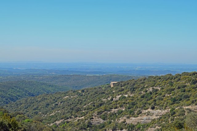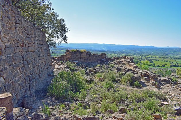 Las señales indicativas del Camino Natural del Somontano de Barbastro informan al paseante sobre la dirección a seguir o la distancia restante al siguiente destino. Tras dos kilómetros de recorrido, una señal dirige hacia la izquierda. Será la segunda parada. Son las ruinas de la ermita de Santa Águeda. Se veían ya desde antes sobre la cima de un pequeño cerro. Queda en pie un muro de lo que fue un edificio rectangular y restos de otros dos. La página web turismosomontano.org informa de que por aquí pasa «la cabañera que comunicaba la Tierra Baja (Mequinenza) con el Pirineo (Broto».