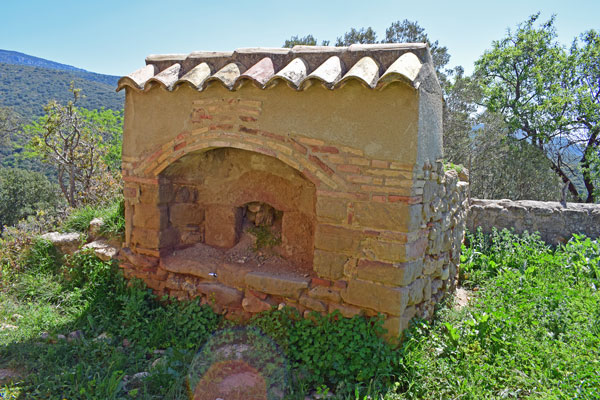 El recorrido comienza por un camino que enlaza las fincas agrícolas del entorno. Dejamos a la derecha la fuente de la Cananella. Una señal invita a desviarse del trazado principal, para acercarse a la ermita de los santos Fabián y Sebastián.