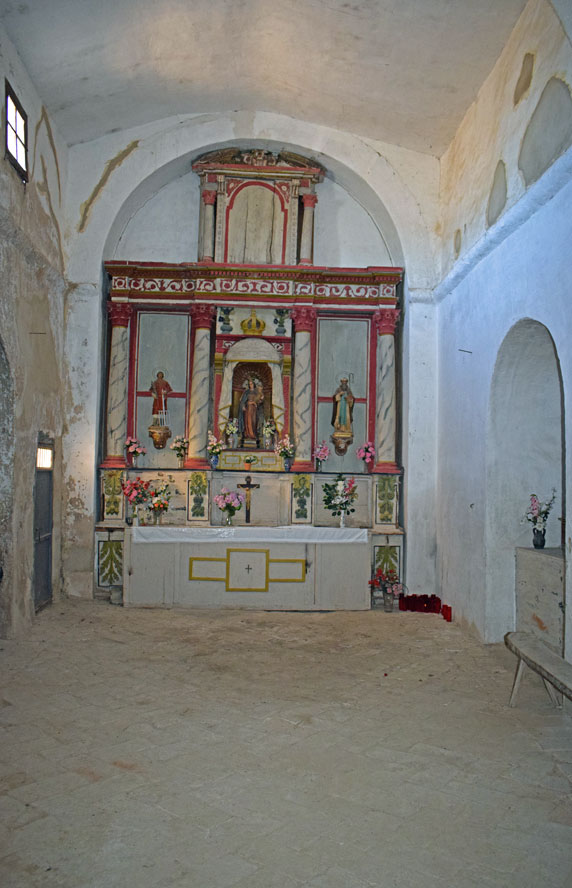 El edificio queda a la izquierda del camino principal, pero el desvío está señalizado y no hay pérdida. Es de planta rectangular y dos fases de construcción, según un panel informativo adosado a la fachada. La última sería la de 1699, según consta en una inscripción que recoge este panel. La pena de este templo es que desapareció un retablo que había en su interior, obra de Pedro García de Benabarre, uno de los pintores góticos más importantes del siglo XV en la Corona de Aragón.
