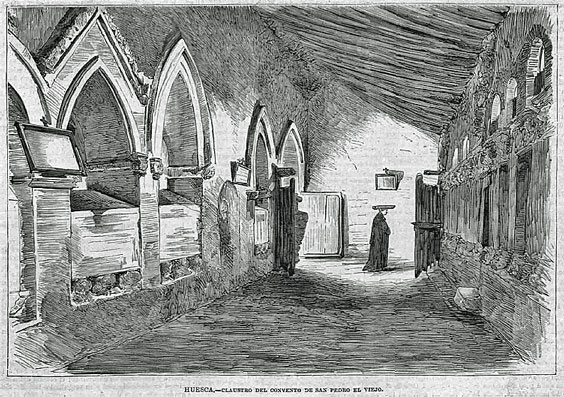 | El claustro de San Pedro el Viejo de Huesca fue lugar de enterramiento (La Ilustración Española y Americana 1874) |