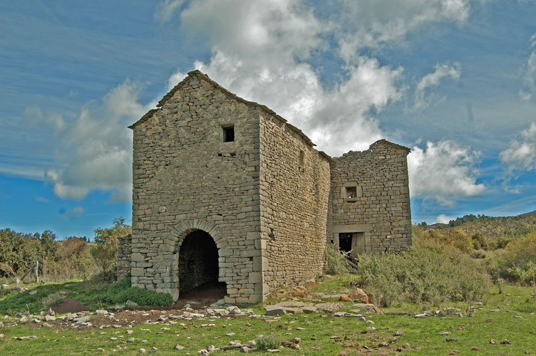 Queda con la cubierta un edificio de grandes dimensiones y acceso también muy amplio, con restos en su interior de servir como refugio para el ganado. Adosadas, se conservan las ruinas de la vivienda y, enfrente, restos de un edificio auxiliar. Como es habitual en toda la zona, destaca en el paisaje la mole de Guara, que es una referencia constante.