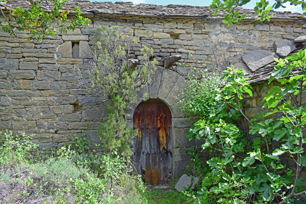 La primera vez que vi una imagen de la ermita de la Virgen de la Sierra fue en el libro «Ermitas de Sobrarbe», publicado en 1997. Allí figuraba una imagen en la contraportada y otra en el interior de la obra. El acceso al conjunto que formaban el templo religioso y el edificio de uso civil estaba cerrado por un muro de piedra con acceso bajo un dintel del mismo material en el que había unas inscripciones. Había que ir, pero siempre lo dejaba para mejor ocasión. Como se dice en un anuncio de la tele: error. Hay que ir a los sitios en cuanto se tiene conocimiento (del lugar). Si se tarda, pasa que ya no está como se veía en la foto.