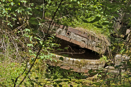 Adivinamos los restos del molino, engullidos por la vegetación y, tras pasar un nuevo puente, estamos en el punto donde se tomaba el agua para mover las ruedas de los molinos que hubo por aquí, según relata Adolfo Castán. Podemos bajar a ver lo que queda del edificio y, entre la ruina y la vegetación, las dos piedras que trituraban el grano se resisten a desaparecer y, en un plano inclinado, recuerdan al visitante el trabajo que allí se realizaba.