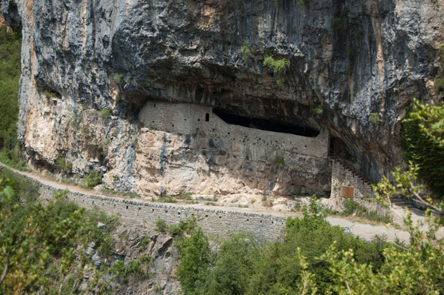 Seguimos andando por un cómodo camino y llegamos enseguida a la ermita de San Úrbez. Se accede por una escalera de piedra que deja al visitante frente a la verja que cierra la ermita. Su estructura se limita a un muro que protege un alargado abrigo, sin tapar del todo para que pase la luz, donde se refugiaba el eremita francés que fue pastor por estas latitudes en el siglo VIII. Al fondo hay un espacio cerrado que sería su lugar de oración.