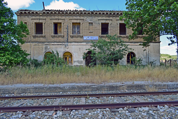 El edificio de la estación de Turuñana ya está en la línea Huesca-Ayerbe, que es la que presta actualmente el servicio entre Zaragoza y Canfranc. Es un edificio de arquitectura diferente a los del resto de la Zuera-Turuñana. Tal vez porque se construyera la última y las modas habían cambiado.