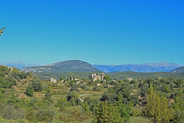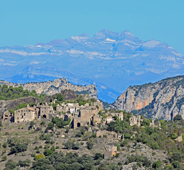 Aquí, también, comienza una pista asfaltada que llega a Aldea de Puy de Cinca. Bueno, no es mala idea. Antes de llegar a este lugar se pueden observar las ruinas de otro núcleo afectado por loa regulación del Cinca en El Grado: Lapenilla.