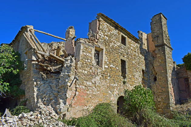 Conforme se pasea, se ve que pocas veces se puede entrar en las ruinas, porque están muy avanzadas. La parroquial y la adjunta Casa del señor de Lapenilla están menos arruinadas que el resto, aunque en este último caso, el deterioro ha avanzado mucho en los últimos años, si comparamos las fotos que hice con las de otros visitantes que estuvieron no hace tanto tiempo.