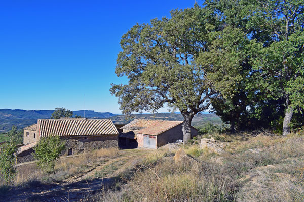 Frente a las viviendas hay unas carrascas de recio porte que completan un atractivo paraje. El monte en el que se levantaba el castillo de Monesma es un elemento común a toda la zona, marca este espacio desde hace siglos y aquí también domina. Más lejos, quedan el Turbón y otras cimas pirenaicas.