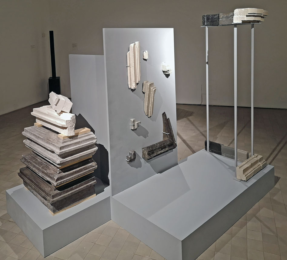 Toma como recurso para plantear estas cuestiones «los mecanismos de exhibición utilizados en la museología arqueológica». Frente a una entidad rotunda del pasado, Antonio toma partes de materiales de carpintería sin valor para la historia y las reelabora de manera que parezcan elementos arqueológicos: «no estamos ante fragmentos de antiguos monumentos, sino ante una falsa ruina normativamente construida».