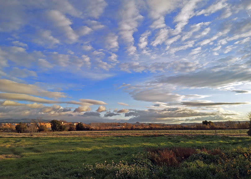 Esta mañana el cielo estaba más limpio que por la tarde. No se barruntaba la lluvia, aunque las nubes iban haciendo acto de presencia. Nos orientaban la mirada hacia Montearagón, aunque apenas se distingue al fondo. Gracias de todas maneras.