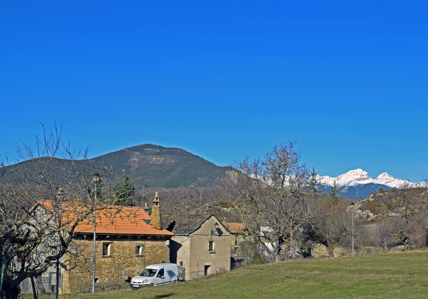 Javierre del Obispo está muy cerca de Sabiñánigo. Se puede llegar por la carretera que, en la variante de la N-330, dirige a Latas, primero, y luego a Lárrede, Busa y Oliván. Por aquí está, también, Satué. Su primitiva actividad agro ganadera, propia de todo el entorno, se complementa ahora con la segunda vivienda y el turismo rural. Tranquilidad, sol y paisaje sugerente, mientras en la tierra llana y los fondos de valle la niebla domina sin piedad el final del año 2019.