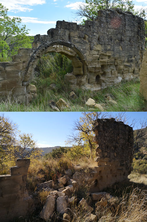 El arco no está en su sitio. Al ver la foto, Antonio García Omedes, responsable del blog sobre románico aragonés, apunta que, «viendo tu fotografía, creo que hay menos piedras caídas de las que debería de haber… puede haber sido un expolio».