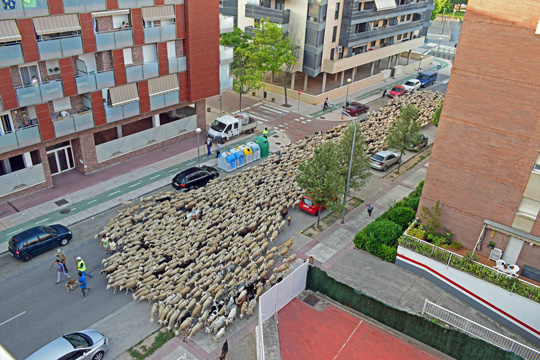 Las calles Alcañiz, doña Sancha, Teruel, avenida de los danzantes, Lucas Mallada hacia Apiés componen una de las rutas habituales en esta fase «ascendente» de la trashumancia. Trabajos casi desaparecidos que se mantienen o vuelven porque la situación económica lo requiere.