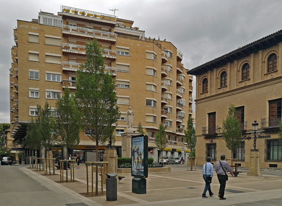 Plaza de los Agustinos, de la Constitución, de Calvo Sotelo y de la Inmaculada. También se le ha conocido como la plaza del Teatro. Nombres que ha tenido este rincón del centro histórico oscense, junto al Coso Alto y las calles Carderera y Loreto.