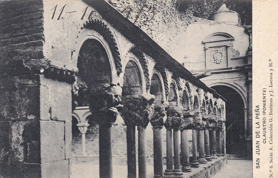 Lola era sobrina de Pilar. Le felicitaba su cumpleaños con una postal del claustro de San Juan de la Peña. Corría el año 1913. Resulta que «lacónica tiene que ser mi felicitación por no poder llegar a carta: tengo que acompañar a unos asturianos». Vaya.