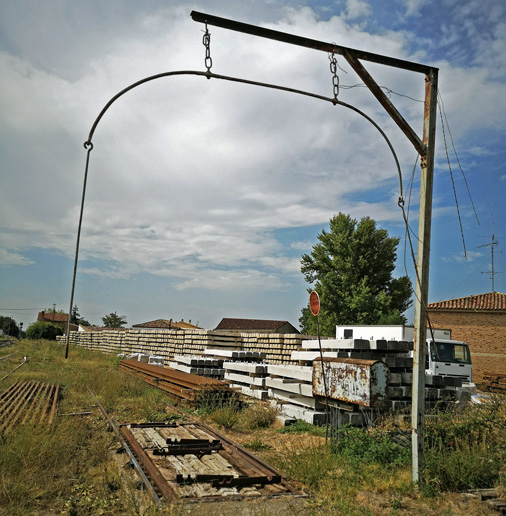 Las obras de renovación en la línea Huesca-Ayerbe están permitiendo actualizar las vías para mejorar las condiciones de viaje y la seguridad de los viajeros. Comparten espacio raíles y traviesas con las aguadas, los cambios de vía o los depósitos de agua. Y en el conjunto, junto al derribado almacén, está la báscula que pesaba la carga de los vagones con mercancías.