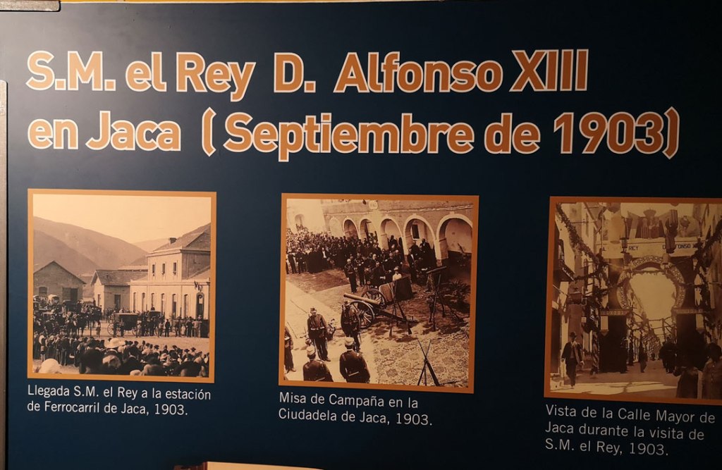 Esta foto de la estación de ferrocarril de Jaca ha tenido varias dataciones. Se solía situar en la segunda o tercera década del siglo XX, relacionándola con un evento importante, dada la gran presencia de personas. Una exposición sobre unidades militares de Montaña en la Ciudadela, en cambio, lo hacía en septiembre de 1903, con motivo de la visita a Jaca del rey Alfonso XIII.