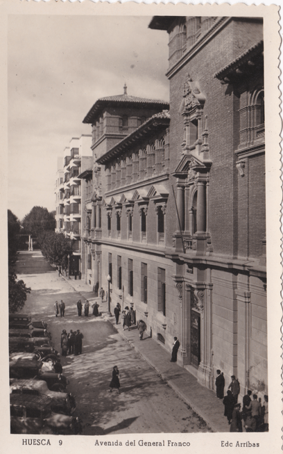 Carmelo Tartón, en su libro «Los fotógrafos aragoneses» (1999), explica que Ediciones Arribas, fundada a principios del siglo XX, tuvo su «época dorada en torno a las décadas 1960-1970», vendiendo sus postales en toda España. Por las pintas de los coches y la ropa de la gente, cabe pensar que la foto se hizo en la primera de estas dos décadas.